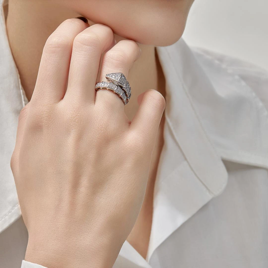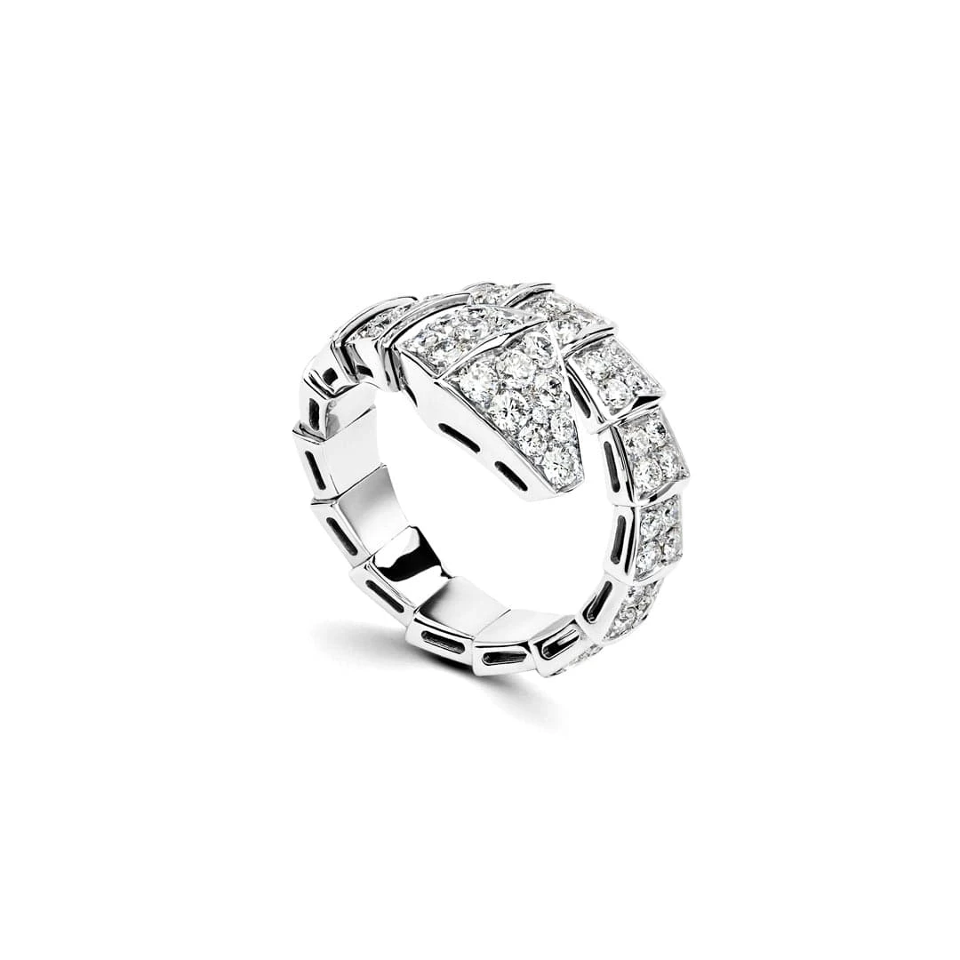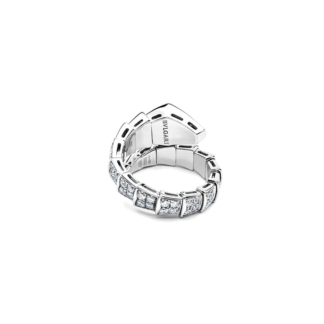 Elevate your daily attire with the Bulgari Serpenti Viper Ring. This fetching one-coil style crafted in 18-karat white gold and smothered in diamond pavé is just the glamorous accessory to upgrade a blazer and denim.