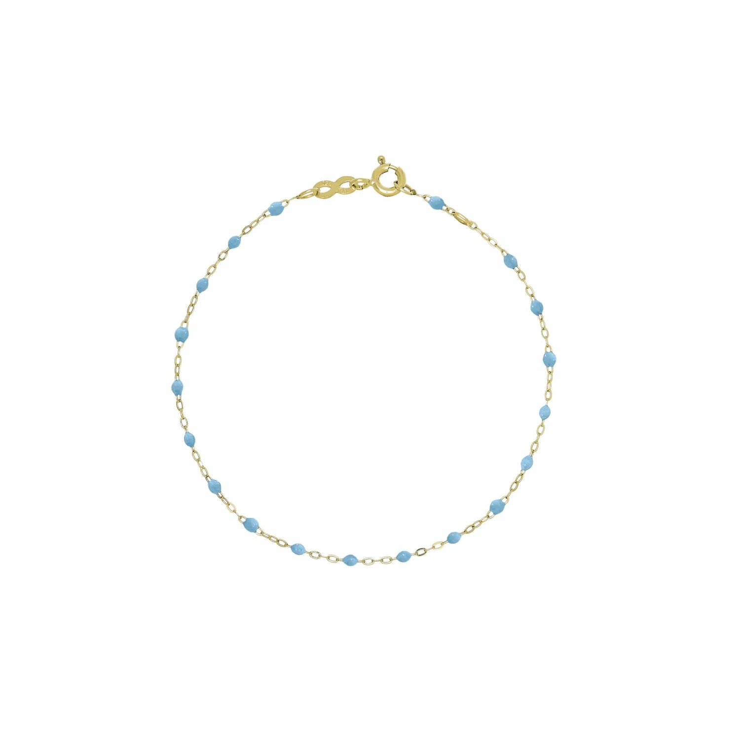 Delicate, subtle, and ready for everyday wear, the Classic Gigi Bracelet by French brand Gigi Clozeau is designed in 18-karat yellow gold and adorned with resin beads in the shade Lagoon. Crafted by hand at the designer’s family-owned factory in the South of France, this cult-favorite accessory is a nod to classic rosary beads. Stack several for a chic, layered look.
