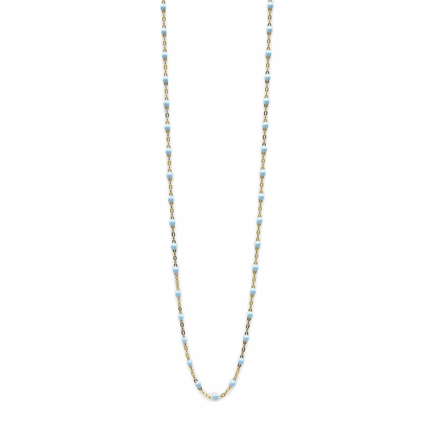Delicate, subtle, and ready for everyday wear, the Classic Gigi Necklace by French brand Gigi Clozeau is designed in 18-karat yellow gold and adorned with resin beads in the shade Baby Blue. Crafted by hand at the designer’s family-owned factory in the South of France, this cult-favorite accessory is a nod to classic rosary beads. This is the perfect layering piece to wear with your go-to necklaces.
