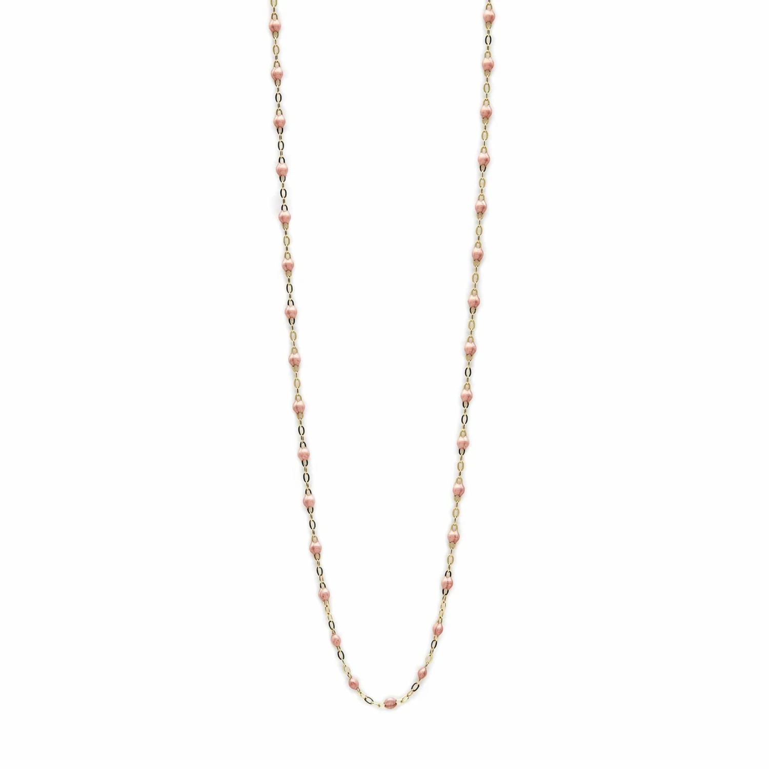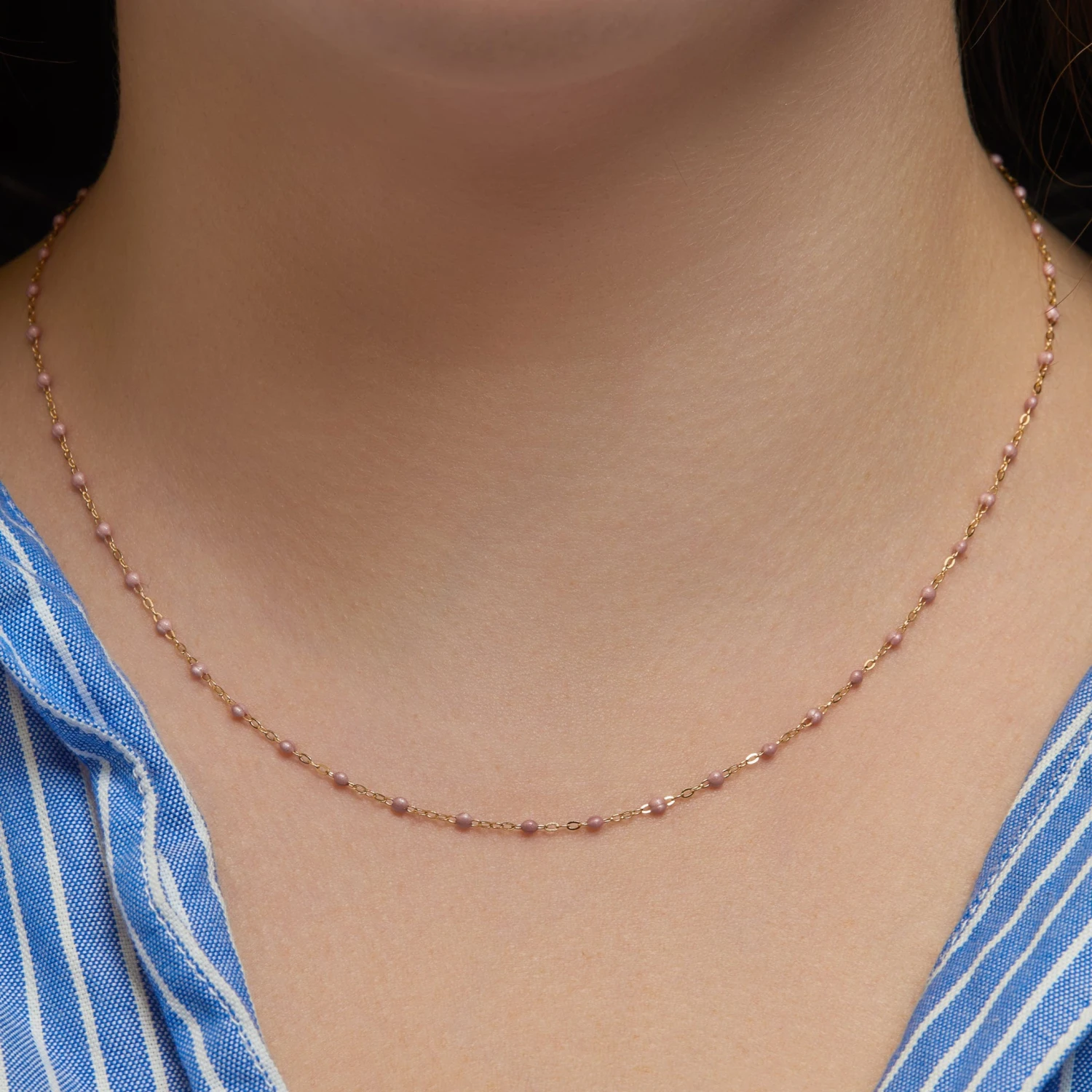 Delicate, subtle, and ready for everyday wear, the Classic Gigi Necklace by French brand Gigi Clozeau is designed in 18-karat yellow gold and adorned with resin beads in the shade Blush. Crafted by hand at the designer’s family-owned factory in the South of France, this cult-favorite accessory is a nod to classic rosary beads. This is the perfect layering piece to wear with your go-to necklaces.