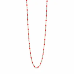 Delicate, subtle, and ready for everyday wear, the Classic Gigi Necklace by French brand Gigi Clozeau is designed in 18-karat yellow gold and adorned with resin beads in the shade Coral. Crafted by hand at the designer’s family-owned factory in the South of France, this cult-favorite accessory is a nod to classic rosary beads. This is the perfect layering piece to wear with your go-to necklaces.