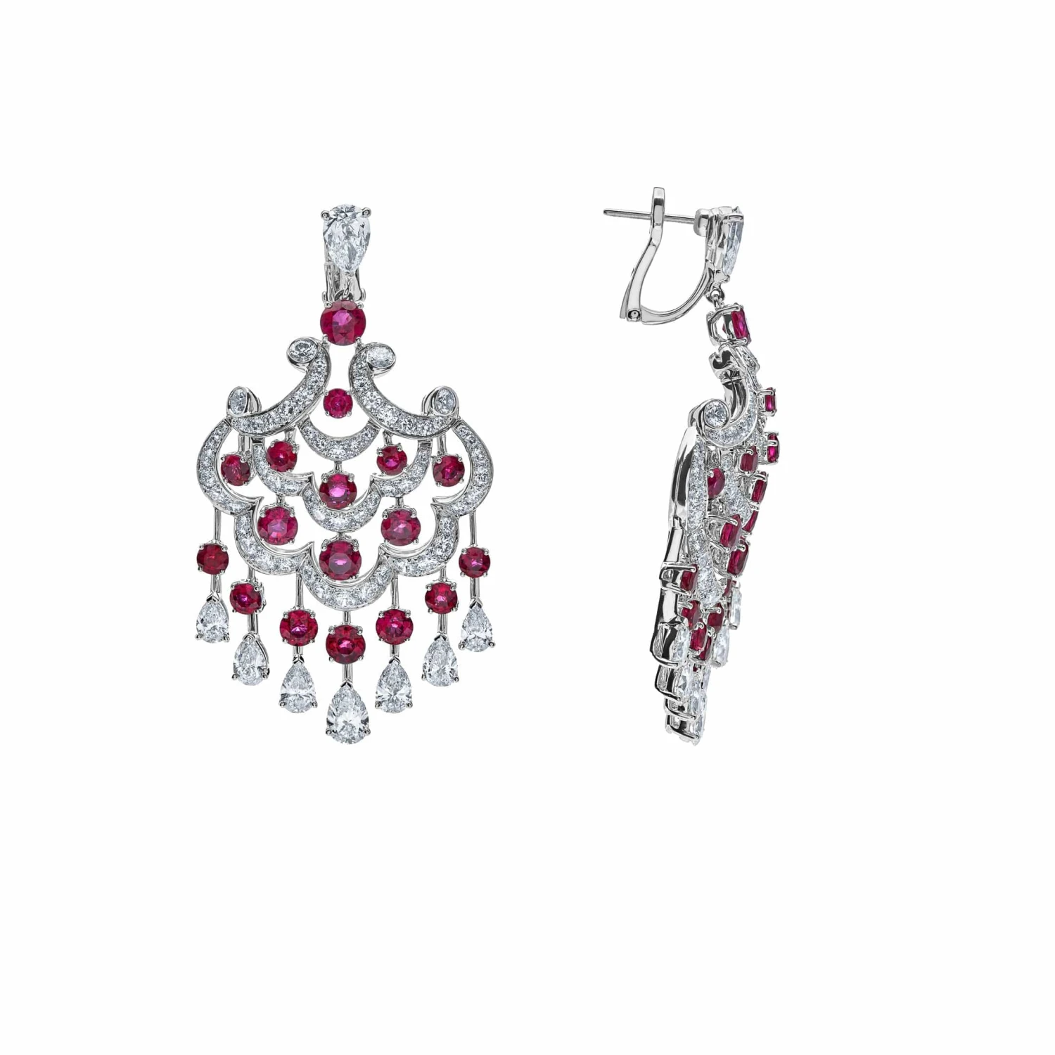 Graff Graff White Gold Ruby And Diamond Chandelier Earrings