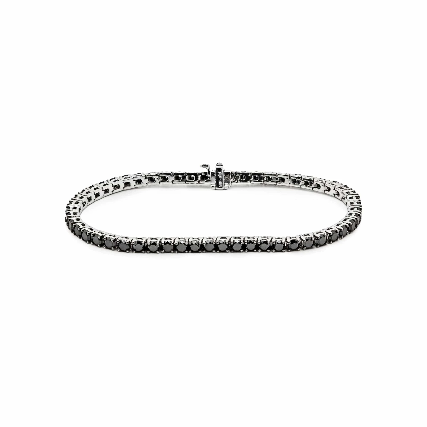 You’ve got the white diamond tennis bracelet; now it’s time to add black diamonds to your arsenal. More subtle than white diamonds but just as luxurious, this 18-karat white gold bracelet is set with nearly 10 carats of round black diamonds. It measures 8 inches long–the perfect slightly loose fit for the average male wrist. Wear yours daily with jeans and sneakers, then layer it with a white diamond style for a night out.