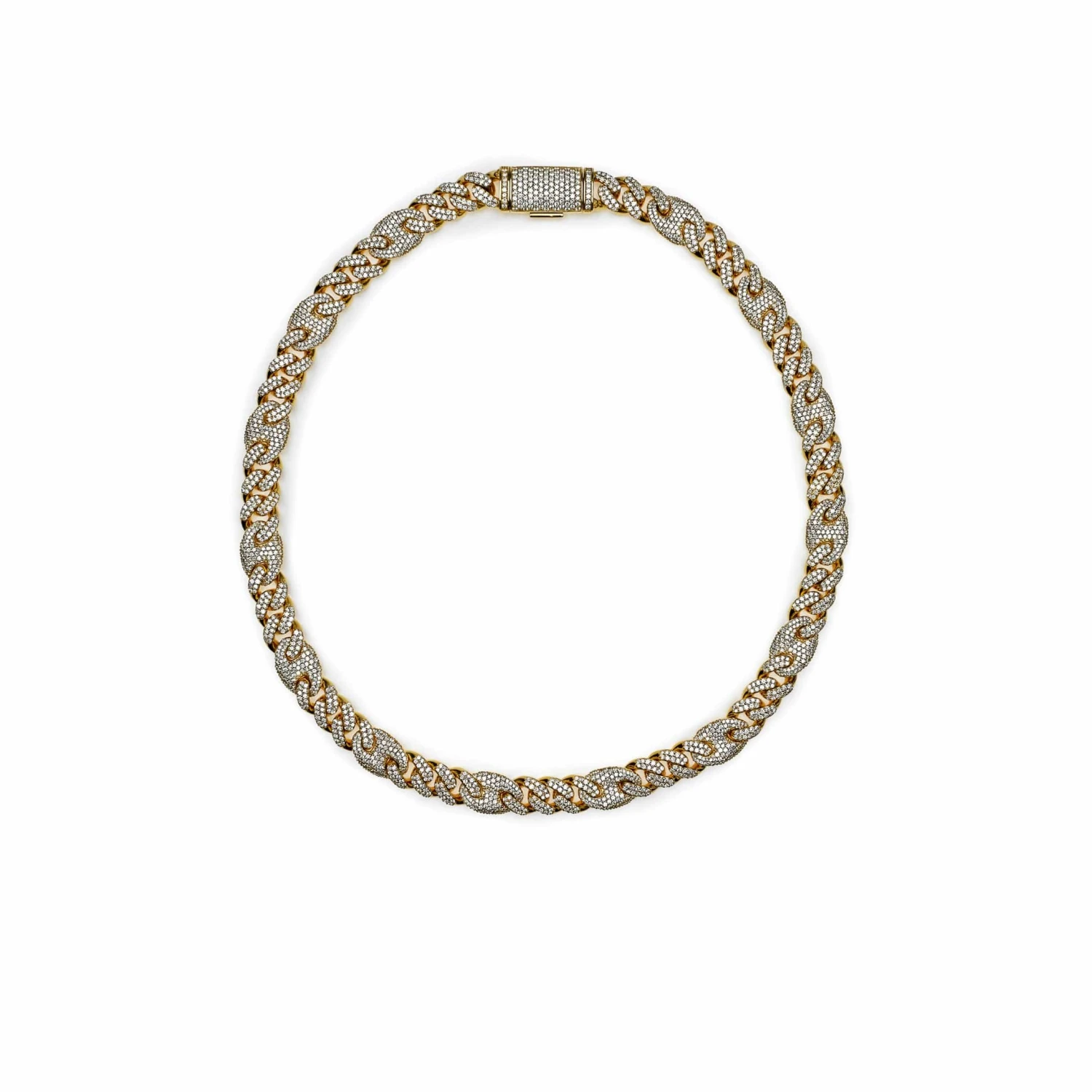 Mens Cuban Link and Gucci Link with Pavé Diamond Yellow Gold Necklace