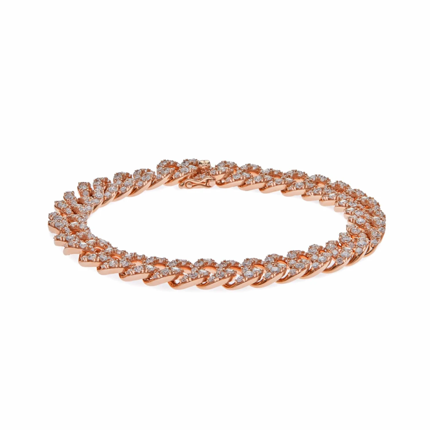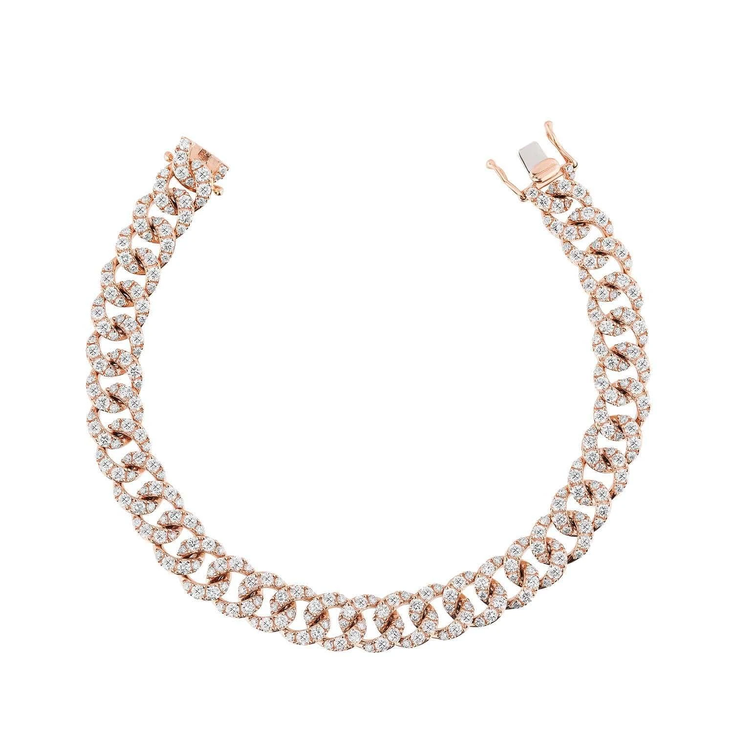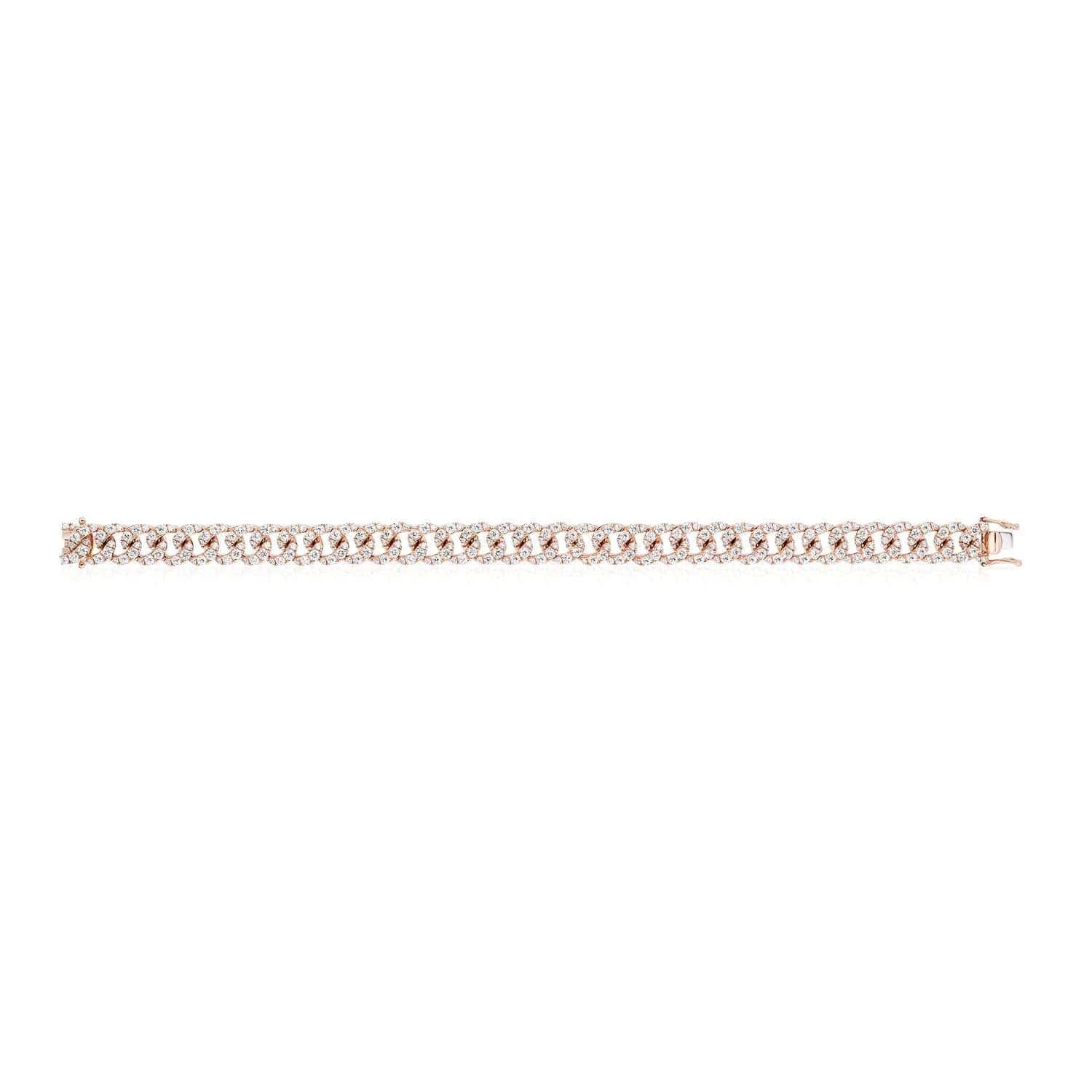 Make a statement with this 18k Rose Gold Diamond Cuban Link Bracelet. This is a piece of jewelry you can style with anything in your wardrobe. Roll up your sleeves and let the diamonds glisten in the sun.Â