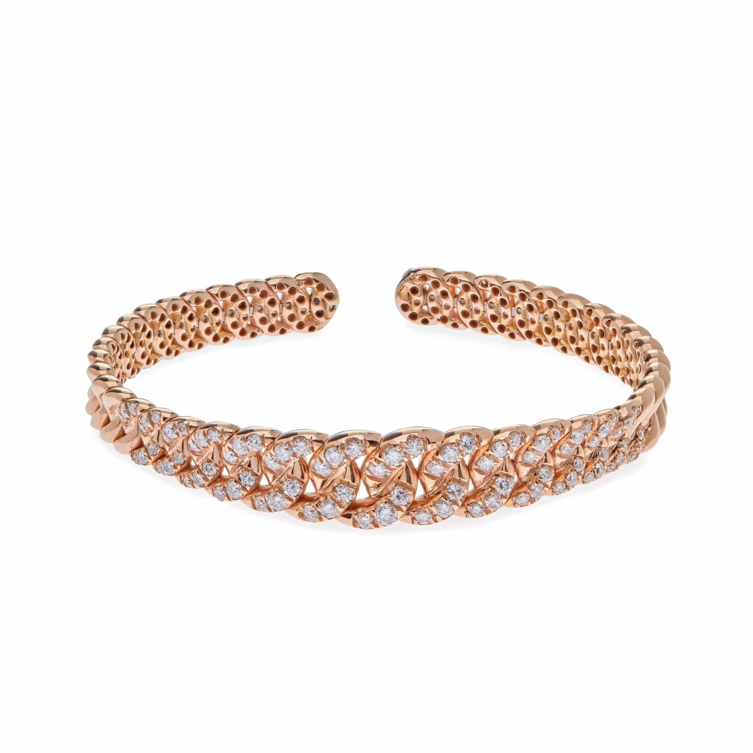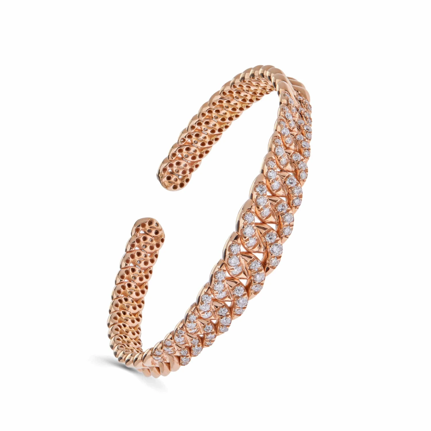 Rose Gold and Diamond Cuban Link Cuff Bracelet