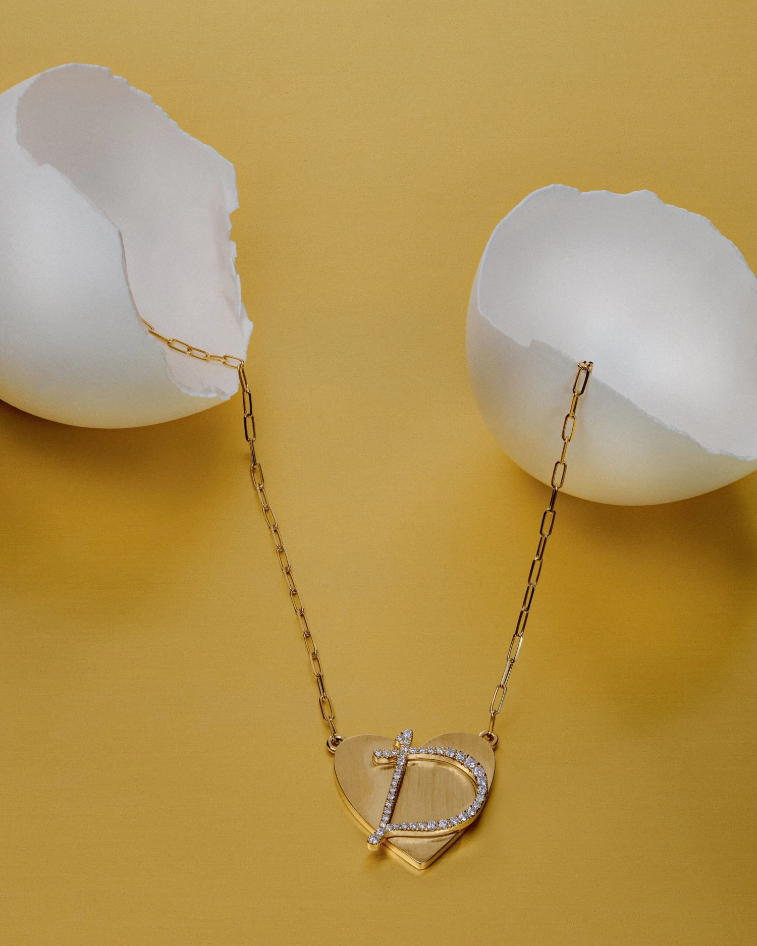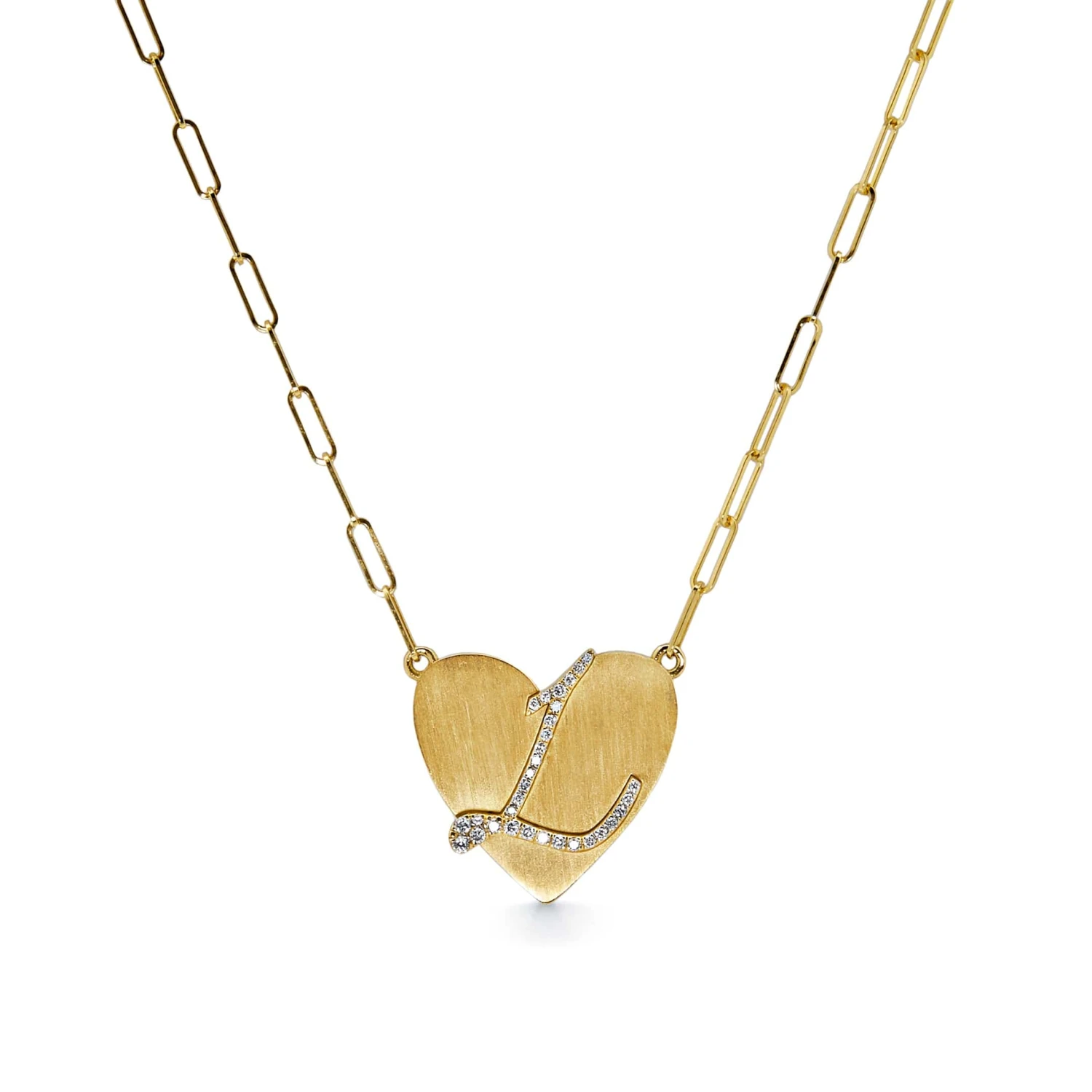 The Self-Love Pendant is handcrafted in 18-karat yellow gold and features between 0.35 and 0.55 carats of F-color, VVS1 clarity.