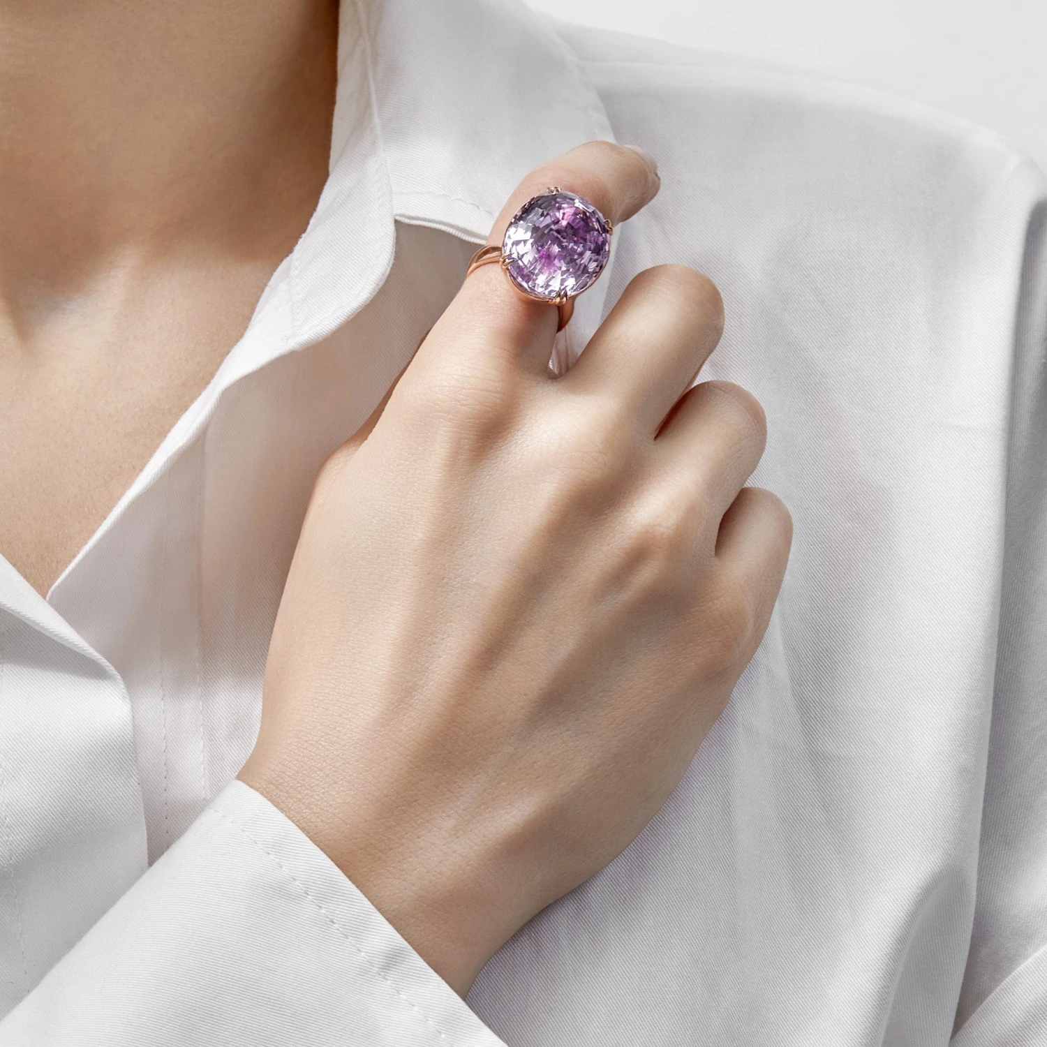 Solitaire Oval Kunzite Ring
