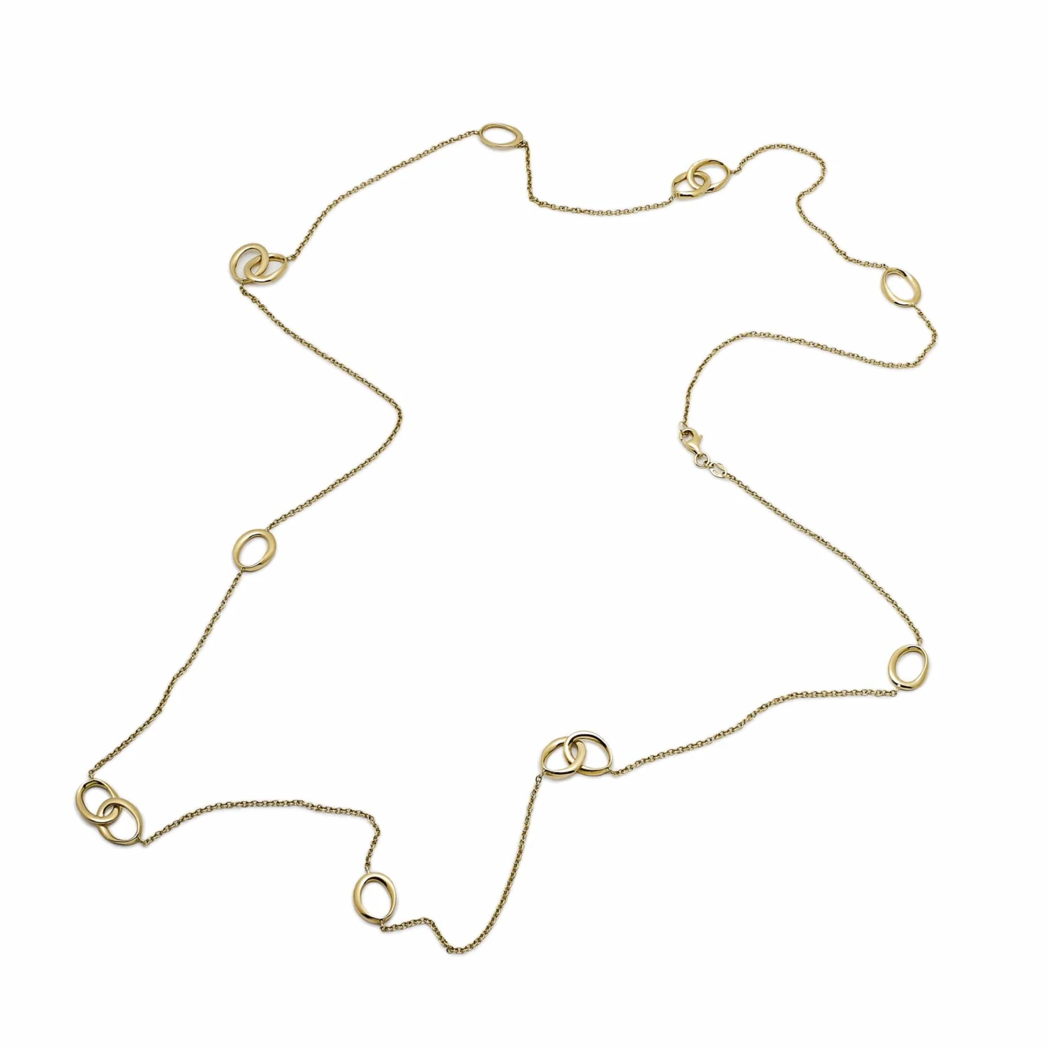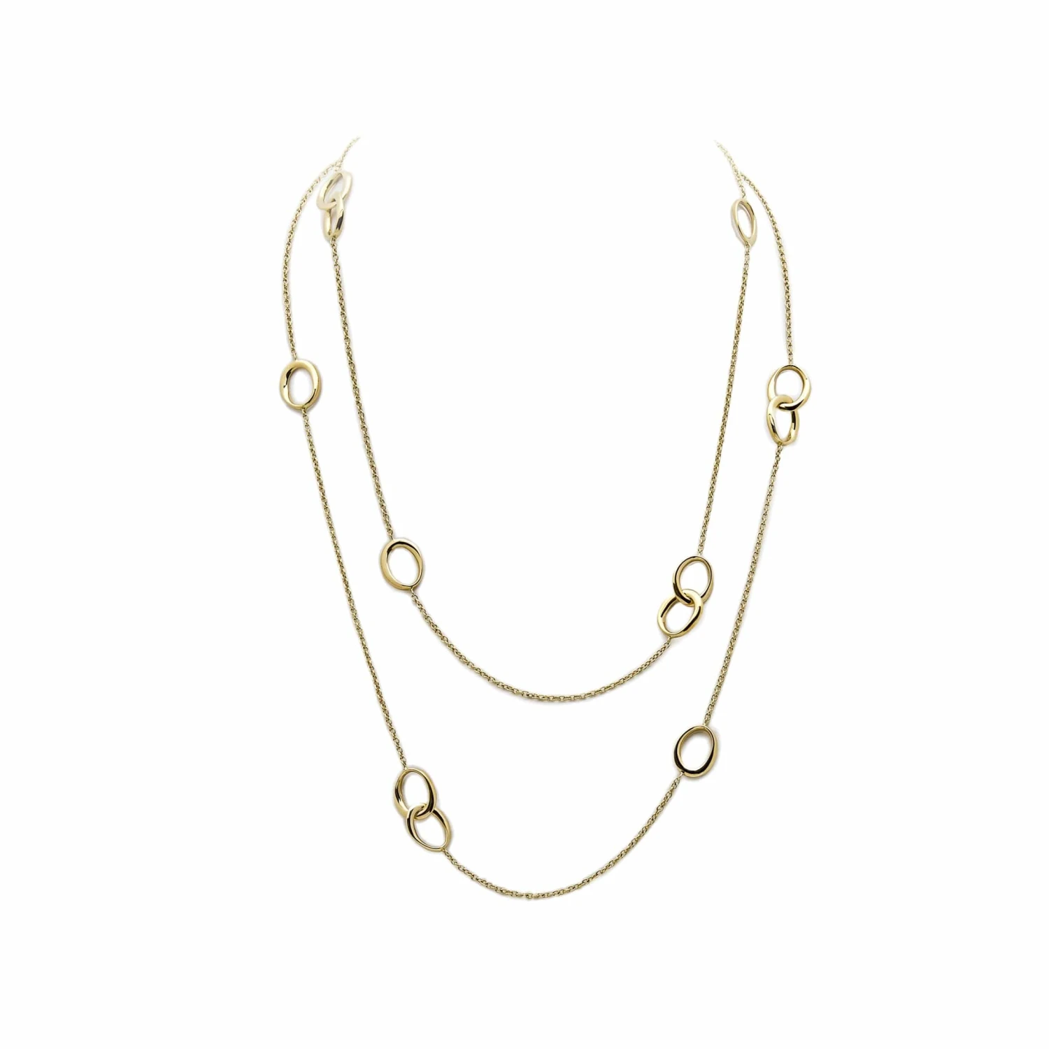A long necklace is an essential styling tool for every woman’s wardrobe. Collared shirts and v-neck dresses will be expertly accessorized with the dramatic Yellow Gold Circular Link Chain Necklace. A nearly 40-inch 18-karat yellow gold chain with graphic circular links can be wrapped several times around the neck to wear with a t-shirt, or worn long to accentuate the lowest-cut neckline you own. A more versatile piece of jewelry doesn’t exist.