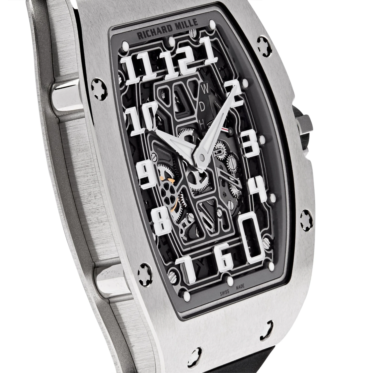 The flattest Richard Mille yet – this sleek style continues to be one of the most sought out timepieces to date. The lightweight aesthetic of the RM 67-01 is crafted in a 38.7 x 47.52mm titanium case that in the signature Tonneau shape. The watch comes on a black rubber strap.