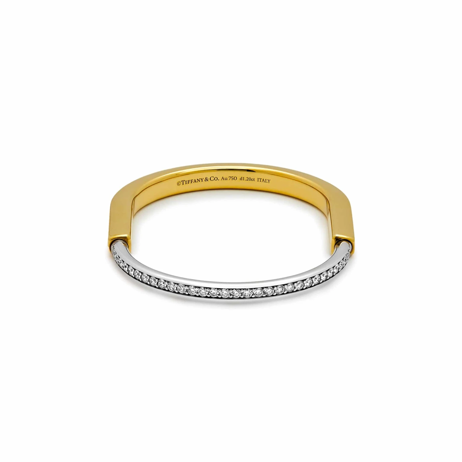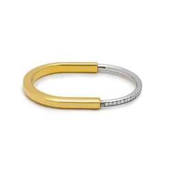 The Tiffany & Co Lock Bangle is for everyone, no matter the gender. It rocks a unique padlock-inspired clasp, a nod to Tiffany’s history. Made with 18k yellow and white gold, it sparkles with hand-set diamonds, totaling 1.20 carats. Sized for wrists up to 6.25 inches, this bangle is a symbol of unity and style. The Tiffany & Co Lock Bangle combines symbolism, craftsmanship, and a touch of elegance, making it a profound and stylish accessory for diverse individuals.